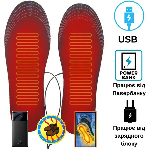 Живлення від будь-якого USB-порту (павербанк, ноутбук, автомобільний зарядний пристрій) робить ці устілки неймовірно практичними. Ви більше не залежите від розеток. Просто підключіть їх до свого павербанка, сховайте його в кишеню, і ваші ноги будуть у теплі годинами, де б ви не знаходилися.